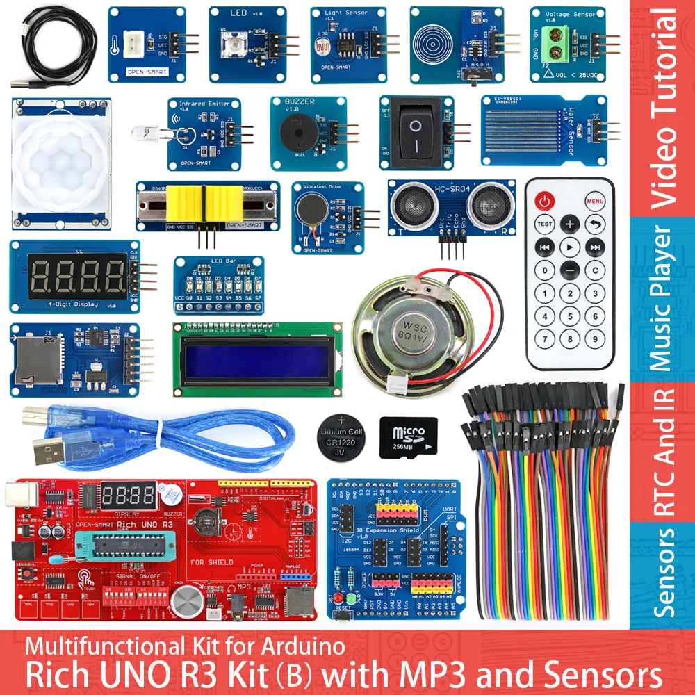 featuresRich UNO R3 Atmega328P Development Board Sensor Module Starter Kit for Arduino with IO Shield MP3 DS1307 RTC Temperature Sensor Big Deals..!!!